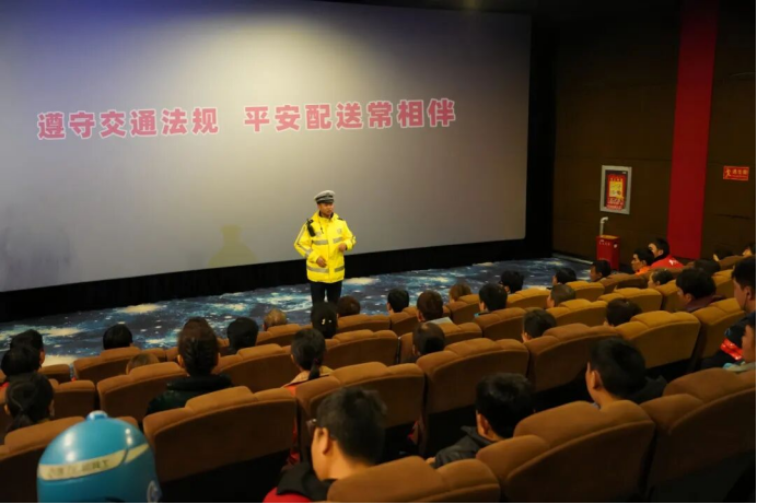 “大家每天奔波在城市街巷,既要兼顾配送效率,更要把自身安全放在首位。”民警一边展示事故现场警示图片,一边细致叮嘱安全细节,“合格的头盔是骑行‘保命符’,必须规范佩戴、系紧卡扣;遇到恶劣天气,务必放慢车速,仔细观察路面情况,避免急刹车、急转弯引发危险。”专题授课后,现场播放的交通安全警示教育视频,以触目惊心的事故画面,让骑手们深刻感受到交通违法的惨痛代价,进一步强化了安全出行的自觉意识。