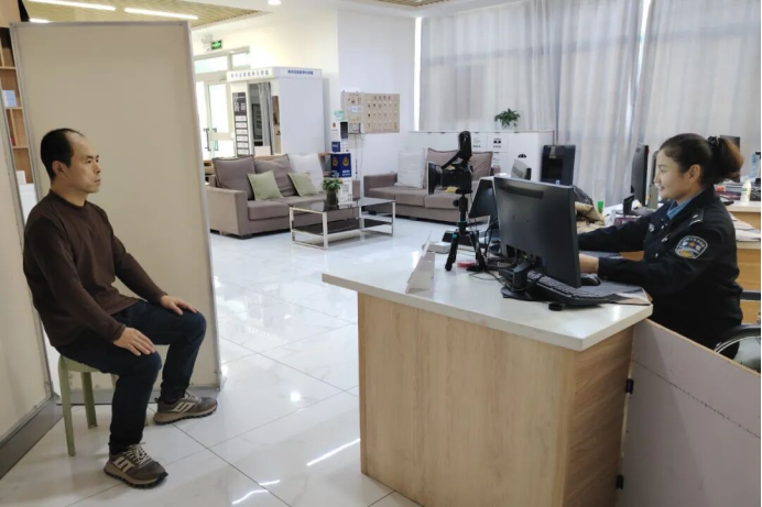 随后,民警耐心指导梁先生调整坐姿、整理仪容,完成人像信息采集等。十分钟后,梁先生的便拿到了身份证换领回执。同时,民警告知梁先生新身份证可以选择邮寄至他务工地点,也能等证件制好后到窗口自取。