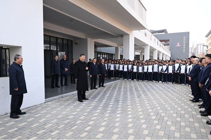 3月23日,中共中央总书记、国家主席、中央军委主席习近平在河北雄安新区考察,并主持召开深入推进雄安新区高质量建设和发展座谈会。这是23日上午,习近平在北京四中雄安校区考察时,同师生亲切交流。新华社记者 谢环驰 摄