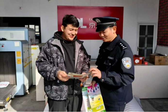 3月9日,阿克陶县公安局禁毒大队民警走进快递站点开展宣传检查工作。通讯员 赵楷摄