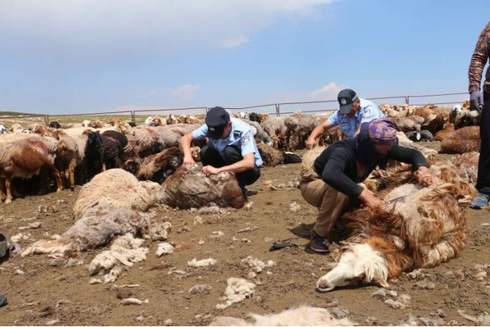 3月16日,牧民叶尔哈那提的羊群遭遇狼害,损失惨重,他向毡房警务室求助。当天,民辅警联合村干部进山搜寻,仅用2小时就找回走散的12只羊。得知狼害保险理赔难、门槛高,王超干脆当起代办员,与乡政府和保险公司沟通,递交相关材料后,他又协助上门核验,跑前跑后办妥了手续。
