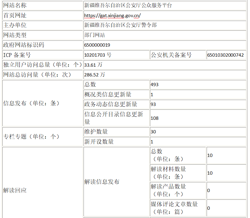 填报单位:新疆维吾尔自治区公安厅