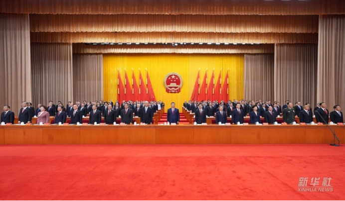 上午10时30分许,在欢快的乐曲声中,习近平等领导同志走上主席台,全场响起长时间的热烈掌声。