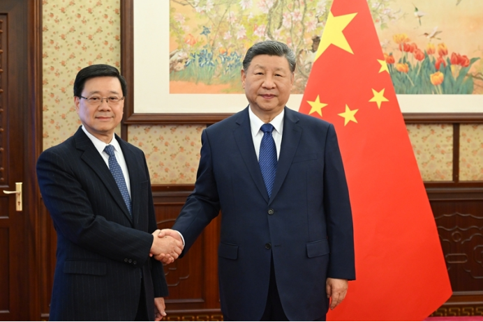 习近平指出,中国共产党二十届四中全会对“十五五”时期国家经济社会发展作出战略擘画,强调要坚定不移贯彻“一国两制”、“港人治港”、高度自治方针,促进香港长期繁荣稳定。特别行政区政府要主动对接国家“十五五”规划,坚持和完善行政主导,扎实推动经济高质量发展,深度参与粤港澳大湾区建设,更好融入和服务国家发展大局。