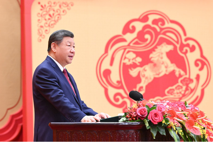 2月14日,中共中央、国务院在北京人民大会堂举行2026年春节团拜会。中共中央总书记、国家主席、中央军委主席习近平发表讲话。新华社记者 李响 摄